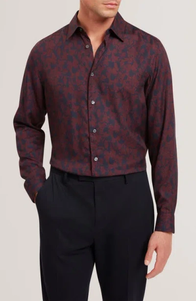 TED BAKER Askelle Long Sleeved Regular Fit Button Down Shirt In Burgundy