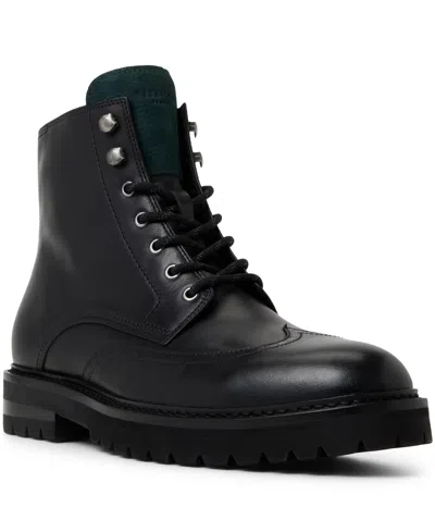 A longwing toe and derby lacing bring distinctive detailing to a boot made of jet-black leather with a chunky sole and grippy lugs grounding every step in durable traction. A pop of dusky green on the tongue adds a subtle update to the timeless look. Lace-up style; side zip closure Removable memory-foam insole Leather upper/leather and synthetic lining/synthetic sole Imported
