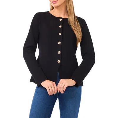 Sculptural buttons add an artful element to a clean-lined cardigan knit in a collarless silhouette. 24 1/2" length Front button closure Collarless Long sleeves 100% viscose Machine wash, tumble dry Imported