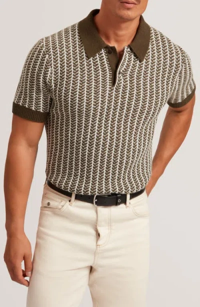 TED BAKER Kolomer Herringbone Texture Polo In Brown