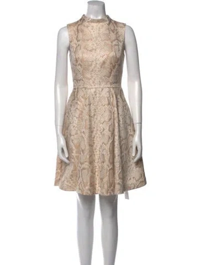 Ted Baker A-Line Dress Neutrals Lace Pattern Pleated Accents Sleeveless with Mock Neck Exposed Zip Closure at Back Designer size 1. Designer Fit: Dresses by Ted Baker typically fit true to size. | Ted Baker Lace Pattern Mini Dress in Neutrals, Women's S