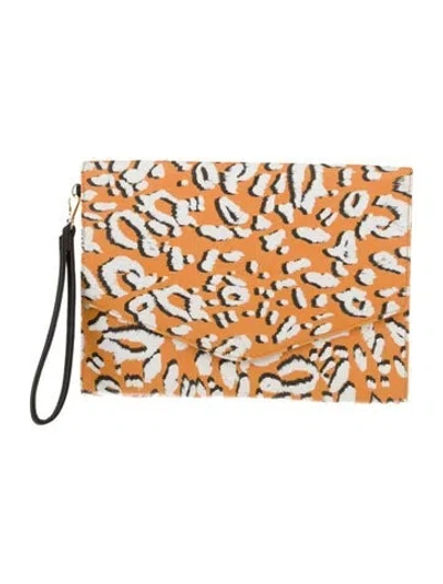 Ted Baker Clutch Orange Leather Animal Print Gold-Tone Hardware Wrist Strap Satin Lining Snap Closure at Front Includes Dust Bag Unfortunately, due to restrictions, this item may not be eligible for shipping in all areas. | Ted Baker Leather Clutch in Orange