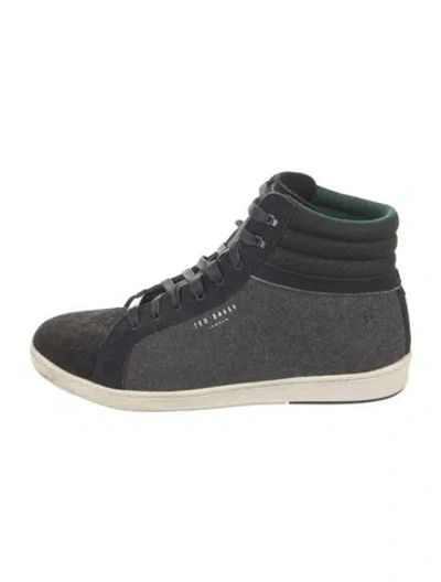 Ted Baker Leather High Top Sneakers Black Patterned Round-Toes Unfortunately, due to restrictions, this item may not be eligible for shipping in all areas. | Ted Baker Leather Patterned Sneakers in Black, Men's 9.5