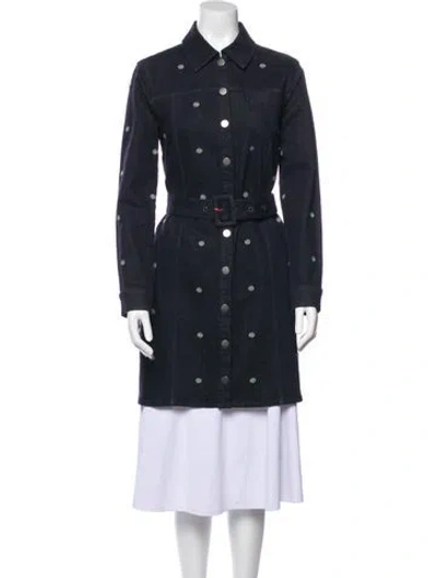 Ted Baker Denim Jacket Blue Printed Pointed Collar Patch Pockets & Snap Closure Designer size 3. Fit: Jackets by Ted Baker typically fit true to size. | Ted Baker Printed Denim Jacket in Blue, Women's L
