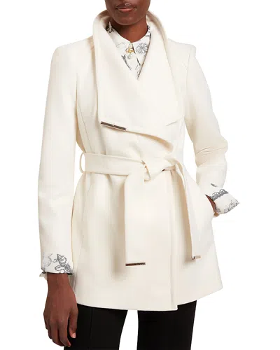 Ted Baker Rosess Wool Blend Wrap Coat.Color:Ivory.Size:5 / US 12.Material:Shell and lining: 70% wool/25% polyamide/5% cashmere.Coats.