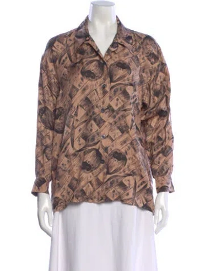 Ted Lapidus Silk Blouse Printed Long Sleeve with Collar Fit: Tops by Ted Lapidus typically fit true to size. | Ted Lapidus Silk Printed Blouse, Women's S