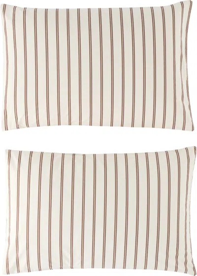 Set of two stonewashed organic cotton percale pillowcases in off-white. · GOTS-certified organic cotton · 200 thread count · Stripes throughout · Envelope closure · H50 x W70 cm / H19.7 x W27.6 Supplier color: Hopper Stripes