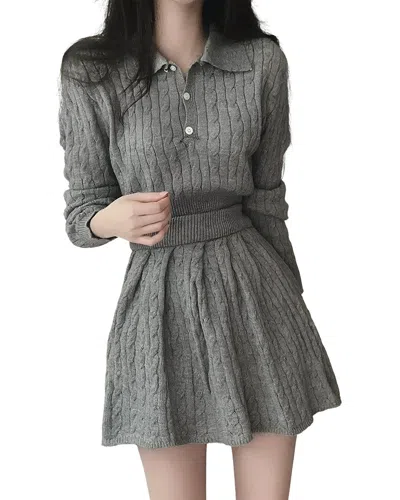 TEODORA 2pc Sweater & Skirt Set In Gray