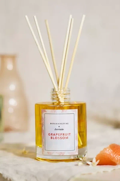 Made exclusively for terrain, this reed diffuser brings sophistication and serenity to any space in your home with its long-lasting fragrance. Scent Notes Cut Lavender: lavender, rose, pine, musk, vanilla, cedarwood, sandalwood Grapefruit Blossom: grapefruit, orange, lemon, mint, raspberry, vanilla, musk Honeysuckle Vine: fresh green leaves, jasmine, gardenia, orange blossoms, raspberry, peach, musk, coconut How to use: Remove the stopper and insert reeds. Always place the diffuser on an oil-resistant surface. Gently flip the reeds weekly to increase fragrance distribution. For optimal fragrance, allow reeds to absorb fragrance oil for 24 to 48 hours before flipping. Botaniculture Reed Diffuser by Terrain in Pink at Anthropologie