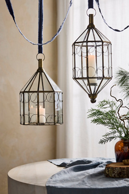 Hand-crafted especially for terrain, this prettily detailed lantern emits a soft glow when a votive candle is tucked inside. Flourish Iron + Glass Lantern by Terrain in Gold, Size: Largearge at Anthropologie