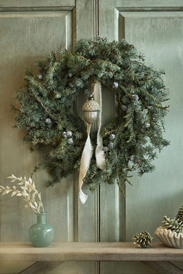 Fresh Blue Atlas Cedar + Silver Bell Wreath In Green