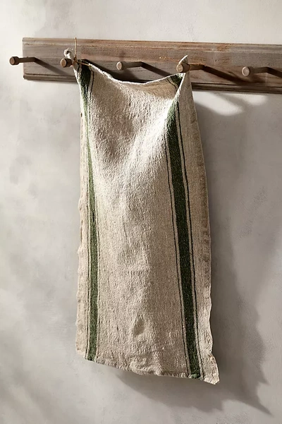 Edged with vintage-inspired stripes, this classic dish towel is handmade by a family-run linen mill. Stone-washed for extra softness. Lithuanian Linen Dish Towel, Green Stripe by Terrain at Anthropologie