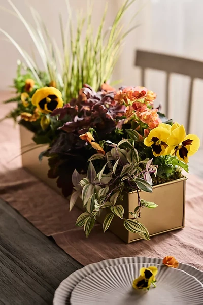 After searching high and low for the perfect plant trays, we decided to design our own. terrain is proud to offer our practical trays and troughs in an array of shapes and sizes for large and small plants alike. Watertight construction prevents damage to indoor surfaces, while cold rolled steel provides outdoor durability. Habit + Form Rectangle Trough, Small by Terrain in Gold, Size: 18" at Anthropologie