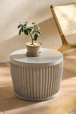 A generous surface area, modern ridge detailing around the side and cool concrete material makes this side table an excellent choice for outdoor lounging spaces. Perfect as extra seating and a plant stand too. Ridge Concrete Side Table by Terrain at Anthropologie