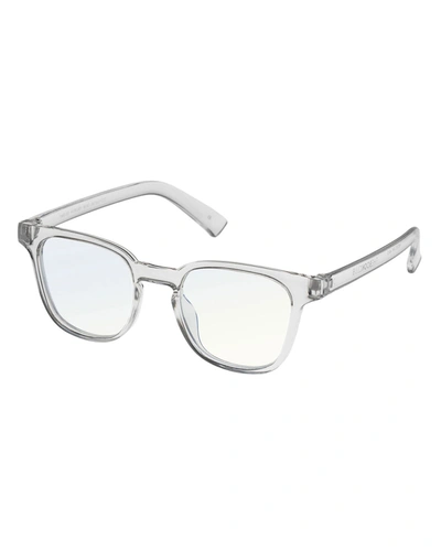 The Book Club "Twelve Hungry Bens" reading glasses in plastic. Lens/bridge/temple (in mm): 49-20-144. Square frames with keyhole bridge. Thin, tapered arms. Imported.