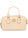 beige leather two top handles gold-tone logo plaque zip fastening detachable shoulder strap