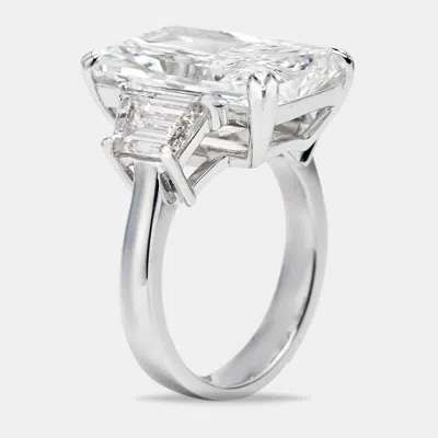 Pre-owned 17.00 Cts Radiant Cut And Trapazoid Lab Grown Diamond 18k White Gold Ring Size 52