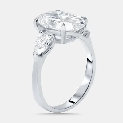 Pre-owned 4.75 Cts Oval Lab Grown Diamond 18k White Gold Ring Size 54