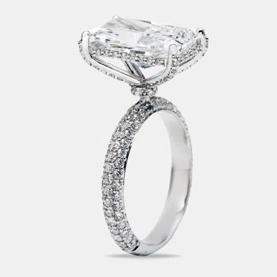 Pre-owned 6.20 Cts Radiant And Round Lab Grown Diamond 18k White Gold Ring Size 52