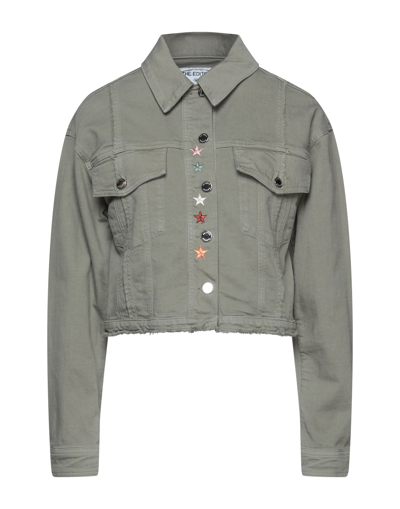 THE EDITOR Denim outerwear. denim, embroidered detailing, brand logo, solid colour with appliqués, colored wash, classic neckline, single-breasted, long sleeves, buttoned cuffs, unlined, button closing, two breast pockets, pocket with buttons, stretch, small sized. 98% Cotton, 2% Elastane