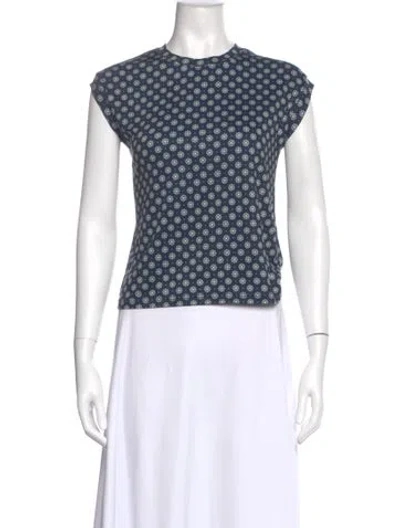 Pre-owned Patterned Crew Neck Top In Blue