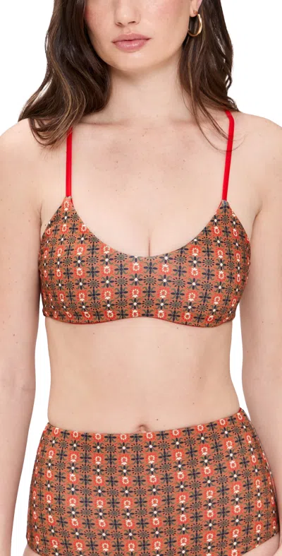 THE GREAT The Reversible Bikini Top Rust Tile Print/hot Red