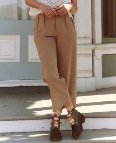 100% Cotton. These tailored trousers feature a timeless cut and nod to vintage menswear details like its double waist pleats, welt pockets with curved flaps, and button fly. Mid-rise and straight-leg design. Machine Wash Cold. Imported. Model is 5'10" wearing size 26.