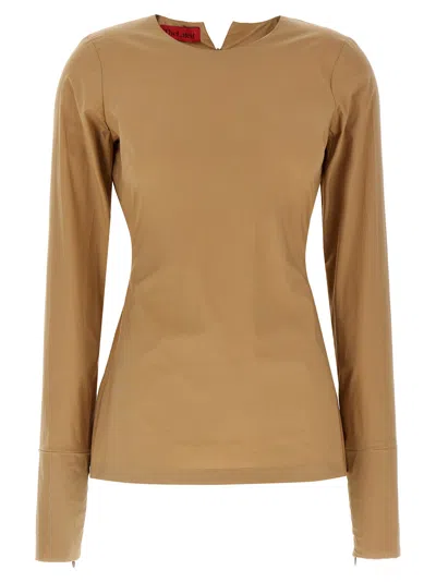 The Latest introduces a fitted cotton poplin T-shirt designed for a modern wardrobe. It showcases a round neckline, long sleeves with zip closures at the cuffs, and a unique back zip split, elevating casual elegance. This Italian-crafted piece ensures a true-to-size fit and a contemporary silhouette for versatile styling. Fitted cotton poplin material Round neckline Long sleeves with zip closures Innovative back zip split Crafted in Italy True-to-size fit Modern silhouette