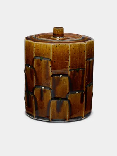 Behind The Leach Pottery is a collection of artists dedicated to building on Bernard Leach and Shoji Hamada's legacy. To do so, they look to the past; they work in the original St Ives studio in Cornwall, source their clay from nearby St Agnes, and honour the signature Standard Ware styles from the 50s, 60s and 70s. This lidded jar is hand-thrown, fired to extreme temperatures and finished with a unique glaze. Note the unique colour variations indicative of its placement in the kiln.