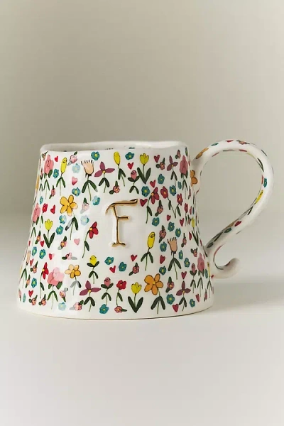 Inspired by her daughter's love of flowers, this ceramic collection from the Mud Fairy (aka artist Deba Khan) is infused with her signature vibrant colours, painterly petals, and charming imperfections. Stoneware Monogram Mug by The Mud Fairy at Anthropologie