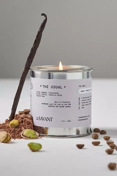 The Usual (Gourmand): The Usual is an all-time best seller and for good reason. Sweet, familiar and welcoming, this woody gourmand will surprise and delight you. WIth notes of cocoa dursting, black coffee and soft cedarwood, The Usual takes you to a quiet morning, tree lined streets, sleepy brownstones, the local coffee shop and friendly neighbors with their usual in hand. For the best burn experience, keep the following in mind: The first time you light your candle, allow it to burn until the wax pool melts all the way to the edge; for a larger candle, this may take several hours. Wax has " memory," so if it is extinguished with a partial pool, that will prevent a full, even pool from forming in the future. Trim your wick each time you light the candle, removing any " bloom" from the previous burn. We recommend lighting a wick that is 1/4-1/2" in length. Ensure that your candle is placed on a heat-safe surface. Do not allow wick trimmings, dust, or other materials to accumulate in the wax pool. To ensure safety and longevity, be sure to check the bottom of your candle for additional instructions, including details on when to discontinue use. Gourmand The Usual Tinned Candle by The New Savant in Brown, Size: XS, Cotton at Anthropologie