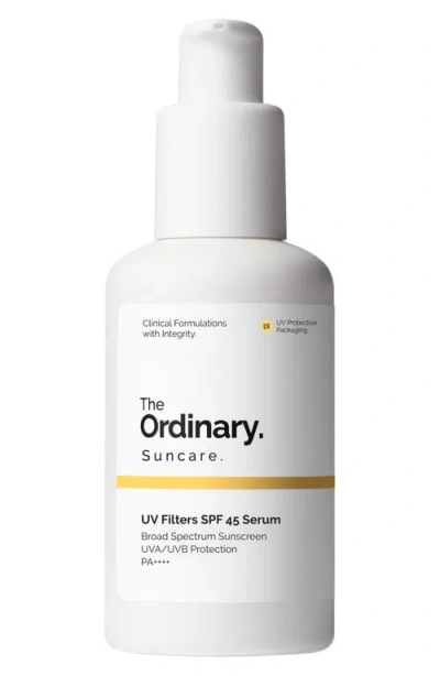 What it is: A serum-textured sunscreen to provide broad-spectrum SPF 45 sun protection.What it does: By providing both UVA and UVB coverage, this formulation protects against sun damage and reduces premature skin aging caused by the sun. This daily sun care formulation is lightweight and white cast-free. It is also compatible with other makeup and skin-care products to allow for easy layering. The UV Filters SPF 45 Serum also offers instant and all-day hydration support, is noncomedogenic (does not clog pores) and provides skin with a natural-looking luminous finish. How to use: Shake the sunscreen serum well before use apply to face liberally and evenly 15 minutes before sun exposure. Reapply every 2 hours use a water-resistant sunscreen if swimming or sweating for use on children less than 6 months of age: ask a doctor. Alcohol-free; oil-free; fragrance-free; gluten-free Cruelty-free Vegan Made in Canada