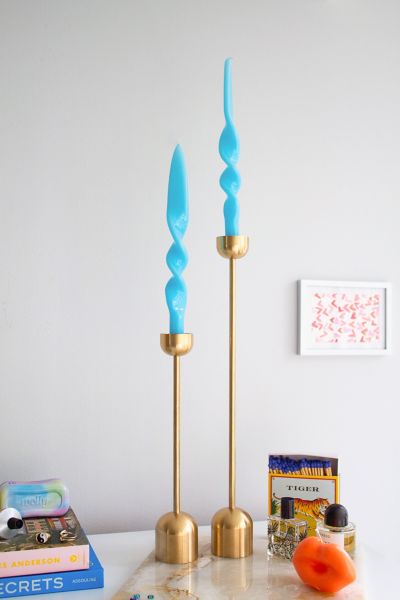 Please note all sales are final. high-gloss taper candles that are nothing but chic. style them sky high on minimalist candle sticks or grab your heirloom / vintage ones and adorn your space. quite the accent for all forms of decor (boho, vintage, retro, minimalist, etc.) finished by hand from an italian family that has been making candles since the 1800s. Please note: Gold candle sticks are not included with purchase. Content + Care made in italy high gloss -paraffin wax + cotton wick Size + Fit 11 in height sold as a set of 2 6 hour burn time The Parmatile Shop Taper Candle Set in Blue at Urban Outfitters
