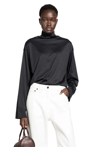 This top from The Row refines everyday layering with its understated elegance. Crafted from superfine lightweight jersey, it offers an exceptionally soft, fluid feel against the skin. The long sleeves and mock neck create a streamlined silhouette, while the seamless edge finish enhances its clean, minimal character. Relaxed yet elevated, it s a versatile piece that brings quiet sophistication to any wardrobe.blacksilk and cotton jersey