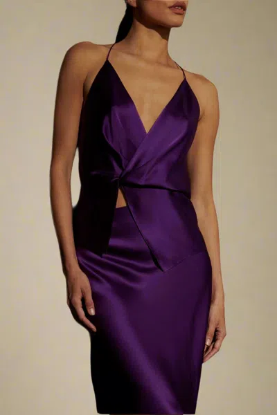 Cami Twist Knot Top by The Sei Details: Composition: 92% Polyester / 8% Elastane Color: Eggplant Imported This product is based on American (US) Sizing Fall/Winter 2024 S.ID.#100424FNA