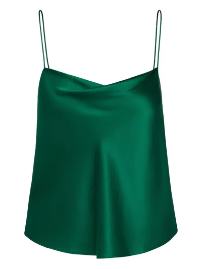 Cowl-neck Satin Top In Green