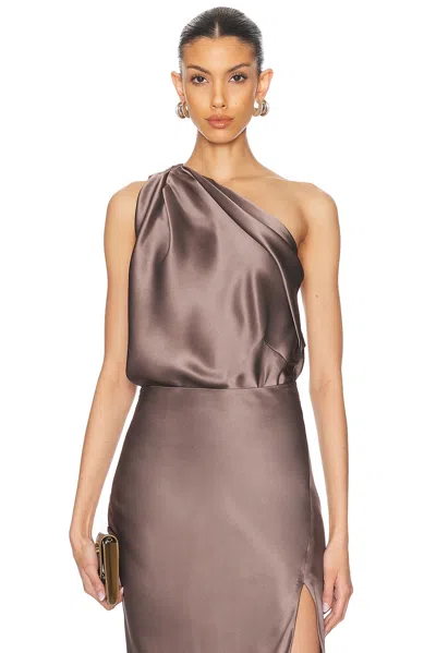 The Sei One Shoulder Drape Top in Grey 100% silk. Made in USA. Dry clean only. Pull-on styling. One-shoulder design. Satin fabric. Item not sold as a set. TSEX-WS82. TS2120. About the designer: THE SEI is a luxury ready-to-wear collection based in L.A. and founded in 2020 by an all-female team of diverse individuals. With prior experience working together at Michelle Mason, the team set out on their own venture where THE SEI was born. The brand sets out to create thoughtful pieces, designed for women—by women, expanding beyond a range of generations and lifestyles. THE SEI aims to build a foundation of polished classics mixed with seductive silhouettes inspired to empower women to feel at their most confident and balanced self, while remaining effortless and timeless.