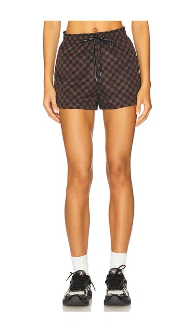 THE UPSIDE Technica Era Short in Brown. - size L (also in M, S, XS) THE UPSIDE Technica Era Short in Brown. - size L (also in M, S, XS) Self: 94% recycled polyester 6% elastane Lining: 100% polyester. Machine wash. Drawstring closure. 3-pocket styling. Item not sold as a set. Shorts measure approx 11 in length. UPSD-WF42. USW325040. Inspired by the yoga communities of NYC, Sydney, and Hawaii, THE UPSIDE combines style and function for those looking to turn heads while breaking a sweat. Created on Oahu's North Shore, founder Jodhi Meares set forth to build a brand focused on an appreciation for our planet and the pursuit of healthy living. THE UPSIDE caters to the fashion-forward and eco-conscious babe, putting bold and trendy prints on high-quality, organic, recycled, and sustainable fabrics. However, the brand doesn't focus only on designing stylish and supportive athleisure; it also contributes a portion of its profits to organizations that advocate for child protection, mental health, and inclusivity. THE UPSIDE believes that how we move through the world matters, and that it's possible to be authentically yourself while shopping ethically and helping communities in need.
