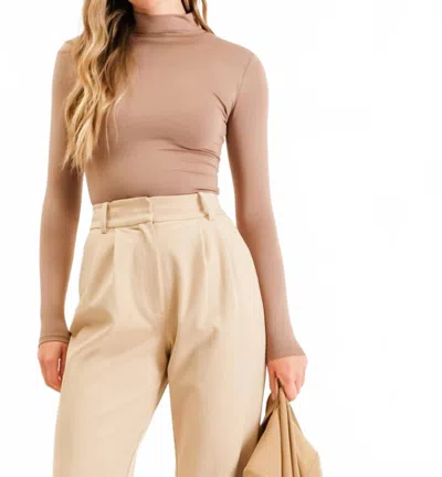 Basics Long Sleeve Mock Neck Top In Tan In Nude