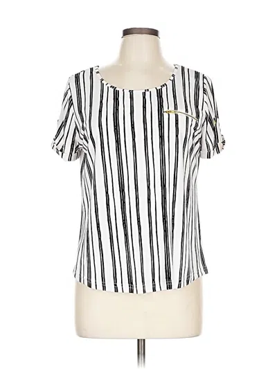 The Workshop Short Sleeve T Shirt, Size: Large. Item Details: White, Stripes Pattern, Square Neckline, Short Sleeves, Women's Tops, Polyester/Spandex