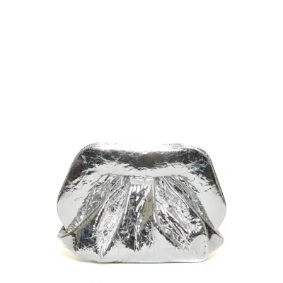 THEMOIRÈ Silver Mirror Clutch With Crinkled Texture And Compact Design