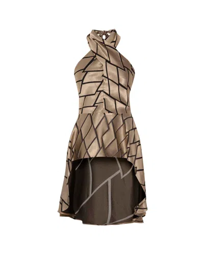 THEO THE LABEL Theia Retro Burnout Hi-low Halter Top In Brown
