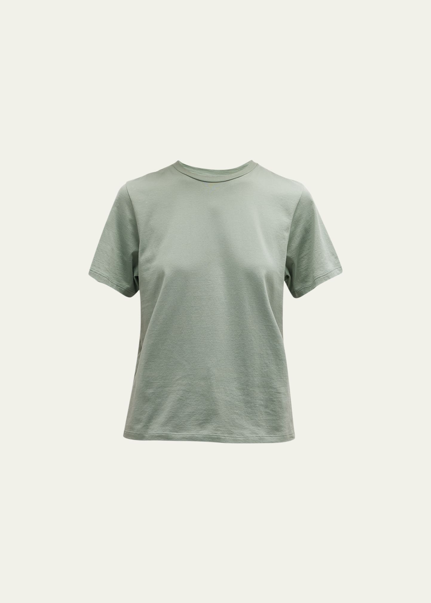 Theory tee double-needle topstitching along the sleeves and hem Crew neckline Short sleeves Relaxed fit Pullover style Pima cotton Made in Peru