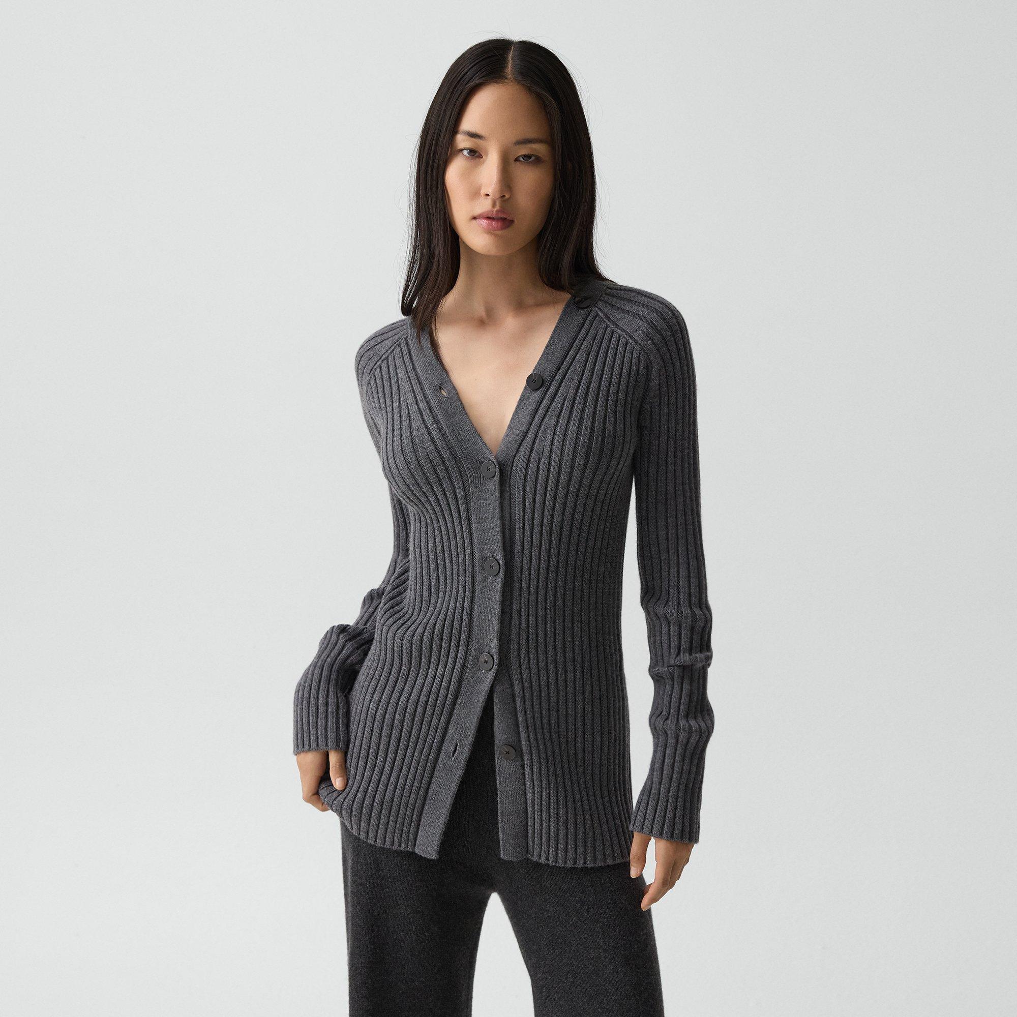 THEORY Button-back Cardigan In Merino Wool In Gray