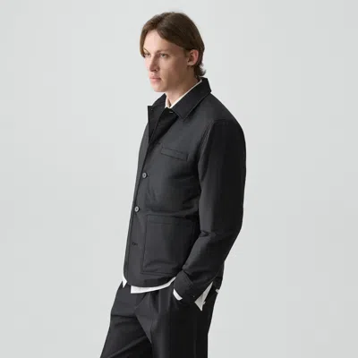 Outerwear that moves with you. This soft layer is detailed with a point collar, a chest welt pocket, and side patch pockets. Wear it open for a relaxed look or buttoned up the front. Crafted of Motion Nylon, the sleek fabric is sourced using certified recycled nylon made from consumer waste. It’s water-resistant with added stretch for comfort and functionality.