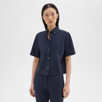 THEORY Cropped Short-sleeve Shirt In Good Wool In Nocturne Navy