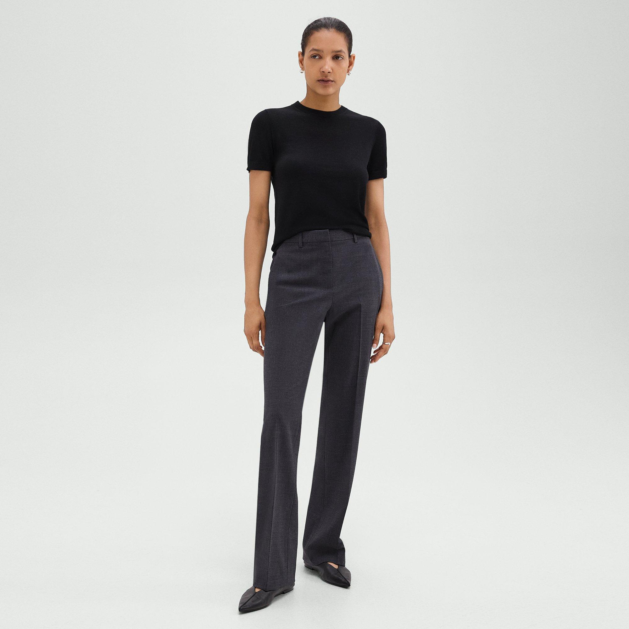 THEORY Flared Full-length Pant In Good Wool In Charcoal Melange