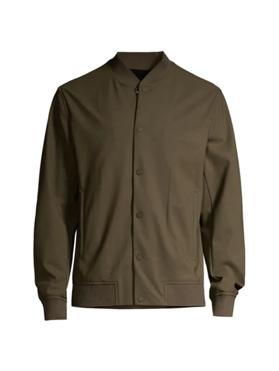 Made of a polyamide blend, this jacket features a standing collar, side slip pockets, and long sleeves with ribbed cuffs. Standing collar Snap-front closure Side slip pockets Long sleeves Ribbed hem & cuffs 73% polyamide/27% elastane Dry clean Imported SIZE & FIT About 28" from shoulder to hem. Mens Modern Coll & Outer - Theory > Theory > Saks Fifth Avenue > Barneys. Theory. Color: Dark Moss. Size: Small.
