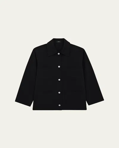 Theory utility jacket featuring front patch pockets Point collar Long sleeves with button cuffs Oversized fit Hem falls to the hip Buttonfront Cotton/nylon/polyamide/spandex Dry clean Imported