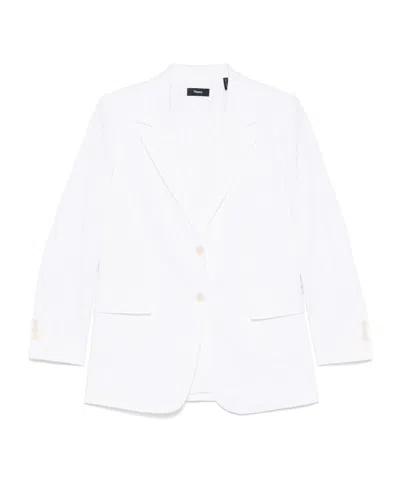 White Jackets Brand. : Theory. Color. : White. Composition. : Outer Composition Linen/flax: 65.0%, Lining Composition Polyester: 100.0%, Outer Composition Viscose: 31.0%, Outer Composition Elastane: 4.0%. Made in. : Viet Nam. MPN. : P0303107. .